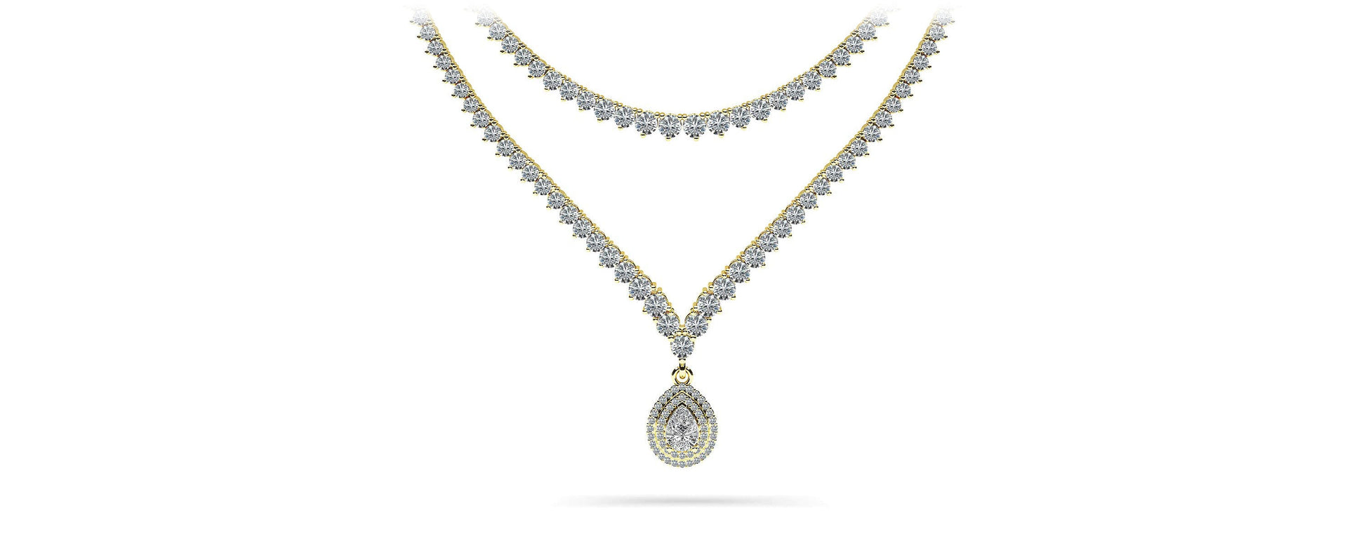 3 Prong Double Strand V Drop Diamond Necklace with 14.64 ct.(finished)