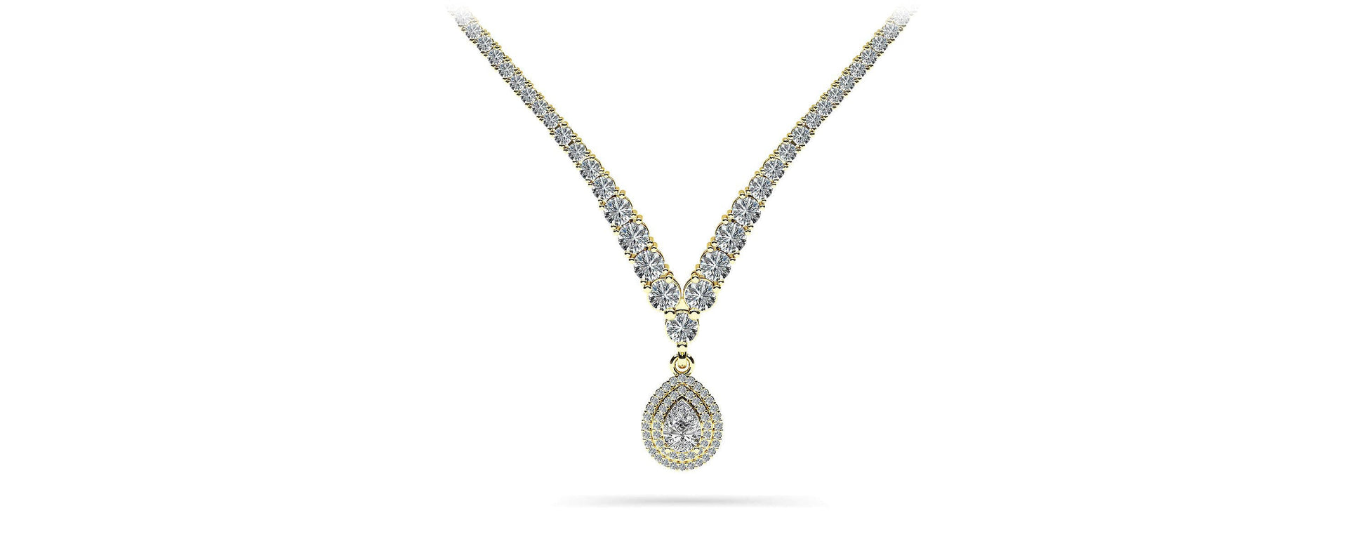 4 Prong Double Strand V Drop Diamond Necklace with 13.12 ct.(finished)