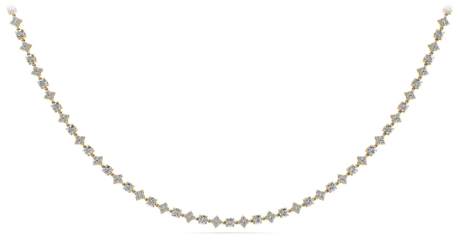 Alternating Clusters Diamond Necklace with 8.16 ct.(finished) 1.6mm, 3.5mm