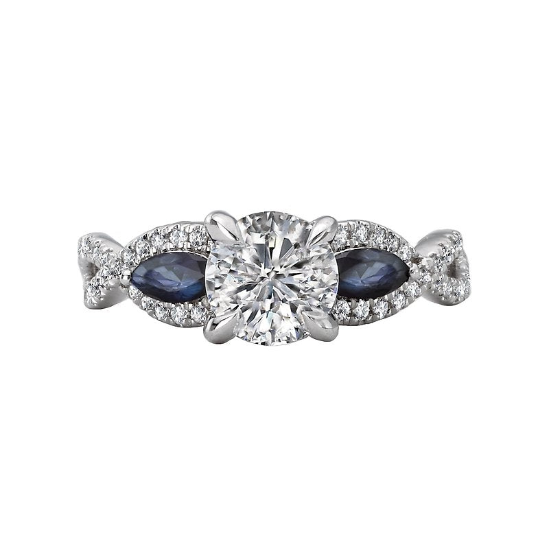 Elevate your proposal with this stunning high polished 14kt white gold engagement ring. It features brilliant cut diamonds gently surrounding marquise sapphires and a claw prong center setting that will accommodate a round 6.5mm diamond of your choosing. This timeless piece (D 1/5cw, S 3/8 gw) is from the elegant Orbelle 14K collection, making it a perfect symbol of your enduring love.