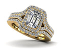 Emerald Cut Halo Diamond Wedding Set Ring with Split Shank Diamond with 1.25 ct. (0.70 ct. center diamond)