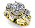 Exquisite Three Stone Diamond Halo Diamond Bridal Set with 3.39 ct. (1.90 ct. center diamond)