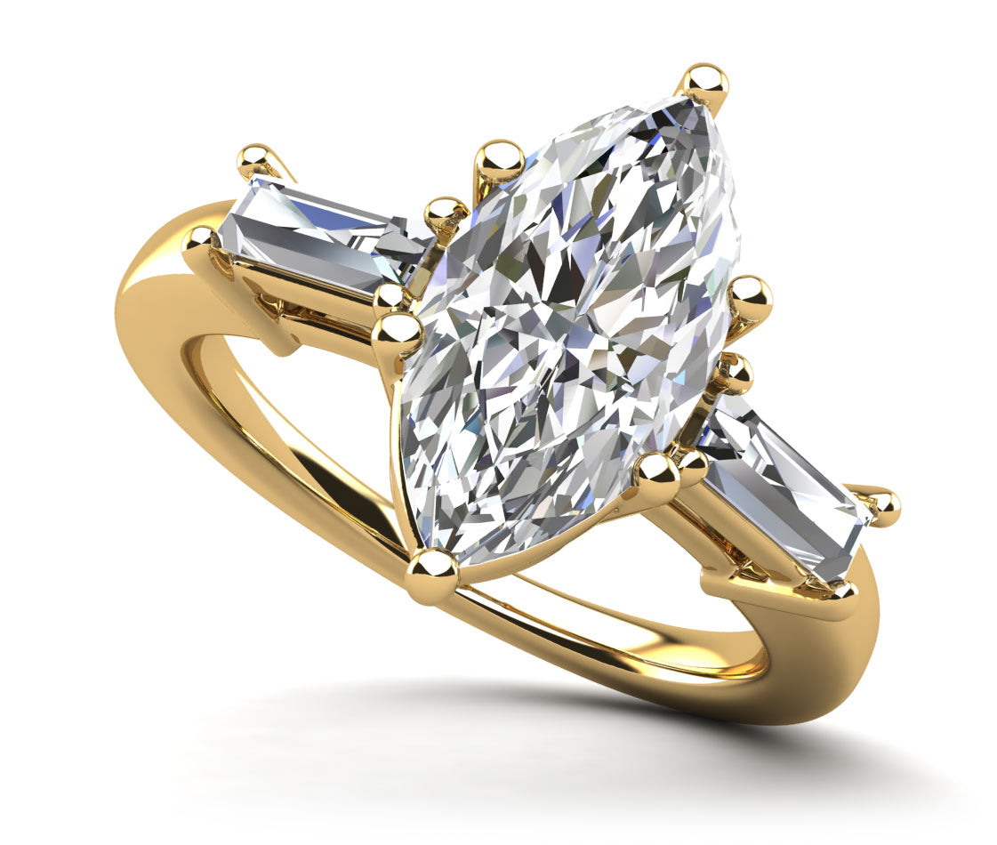 Marquise and Baguettes Diamond Engagement Ring with 2.66 ct. (2.00 ct. center diamond)