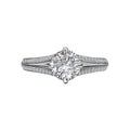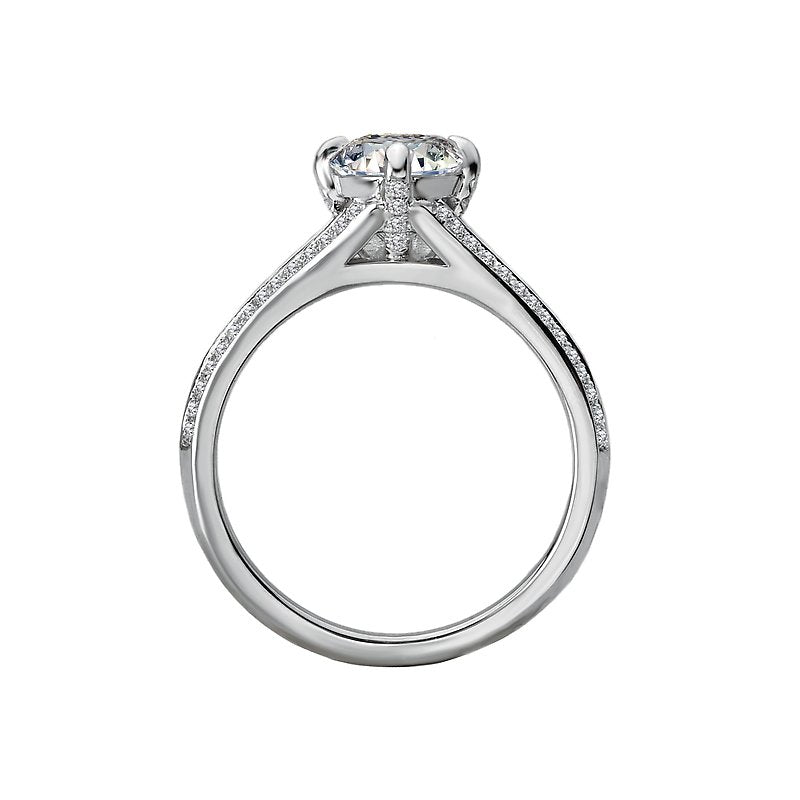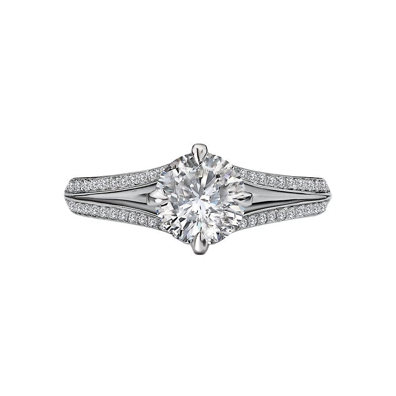Elevate your proposal with this stunning semi-mount diamond engagement ring from the Orbelle collection. Crafted in 14kt white gold, the split shank is adorned with dazzling diamonds on either side of the center, creating a timeless and elegant look. This exquisite piece is designed to accommodate a 6.5mm round diamond (D 1/5 carat total weight), making it the perfect symbol of your love and commitment. With its Bandora style and impeccable craftsmanship, this ring is a true testament to your enduring Orbelle.