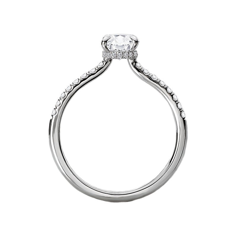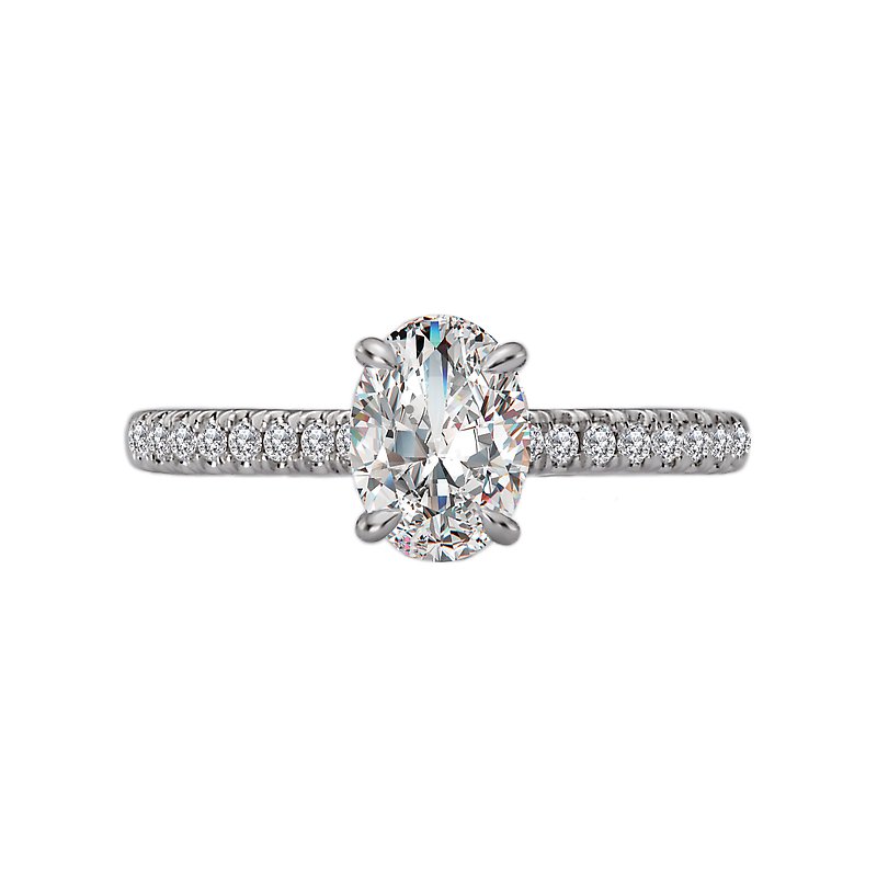 Elevate your proposal with this exquisite 14kt white gold semi-mount engagement ring from the Orbelle collection. The stunning design features round diamonds adorning the shaft and a hidden halo underneath the center setting, perfectly accommodating a 7.5x5.5mm oval cut diamond (D 1/5 carat total weight). This timeless piece exudes elegance and sophistication, making it the perfect choice for a romantic and memorable proposal. Crafted with meticulous attention to detail, this ring is a symbol of everlasting love and commitment.
