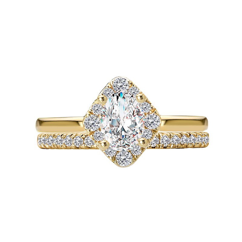 Elevate your proposal with this exquisite semi-mount engagement ring from the Orbelle 14K collection. Crafted in 14kt yellow gold, this ring features a dazzling halo of round diamonds that beautifully frame a 7.5x5.5mm oval shaped diamond (D 1/5 carat total weight). The timeless halo style exudes elegance and sophistication, making it the perfect choice for a romantic and memorable proposal.