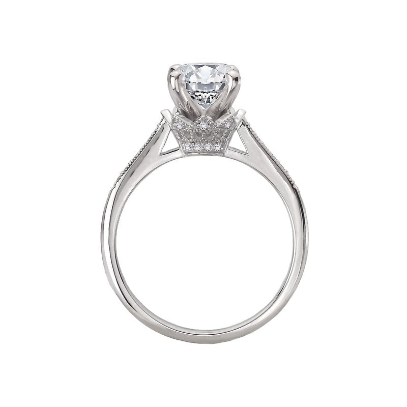 Elevate your proposal with this exquisite Orbelle Art Deco engagement ring. Crafted in 14kt white gold, this Bandora piece features an art deco base and a center setting designed to accommodate a 9x6.5mm oval shaped white diamond (D 1/10 carat total weight). The timeless elegance of this ring makes it the perfect choice for a romantic and unforgettable moment.