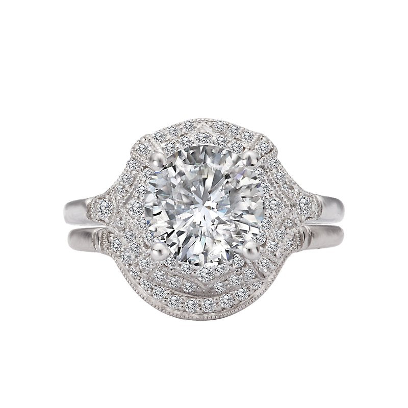Indulge in the timeless elegance of this Orbelle 14K white gold semi-mount engagement ring. The exquisite design features a double halo of round white diamonds and delicate milgrain details, creating a captivating frame for the 8.2mm round diamond center stone. With a total diamond weight of 1/4 carat, this ring exudes sophistication and Orbelle, making it the perfect choice for a memorable proposal. Elevate your love story with this stunning halo ring that symbolizes eternal commitment and enduring beauty.