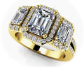 Three Stone Emerald Diamond And Halo Surround Diamond Ring with 1.90 ct. (1.00 ct. center diamond)